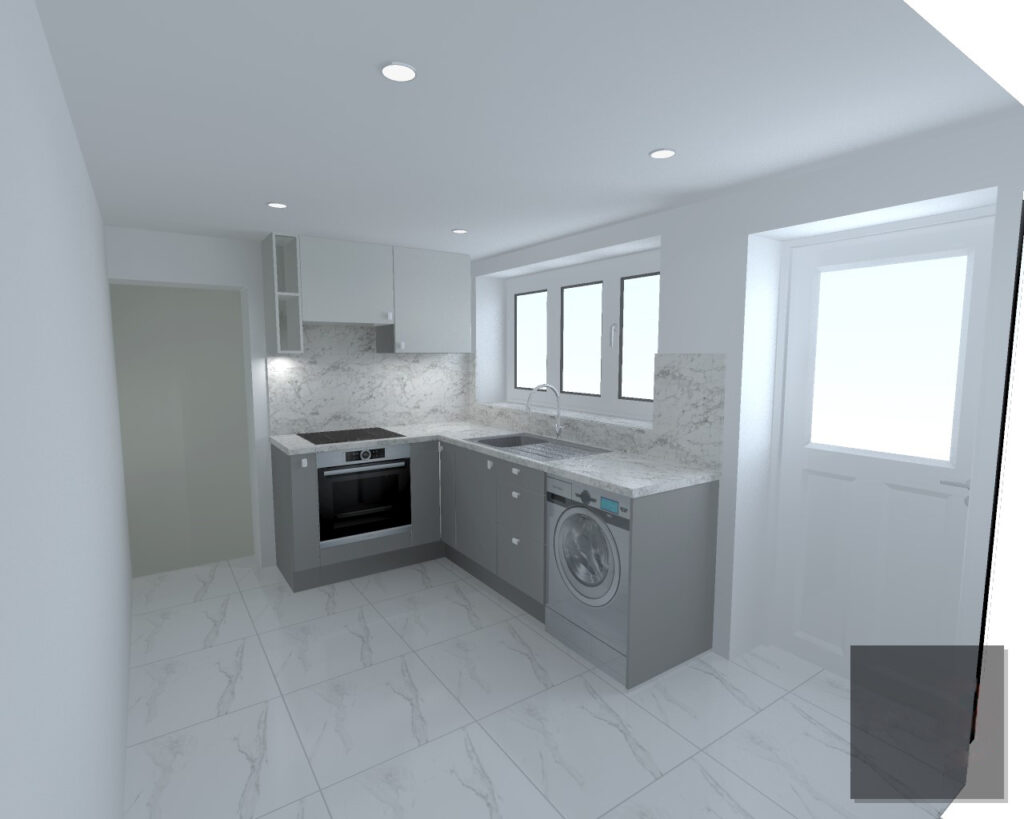 There is a quotation from a reliable local builder to fit the kitchen and plaster the two rooms for £5k. A sample and kitchen design is in the listing for the prospective buyers to get an idea about the new kitchen.