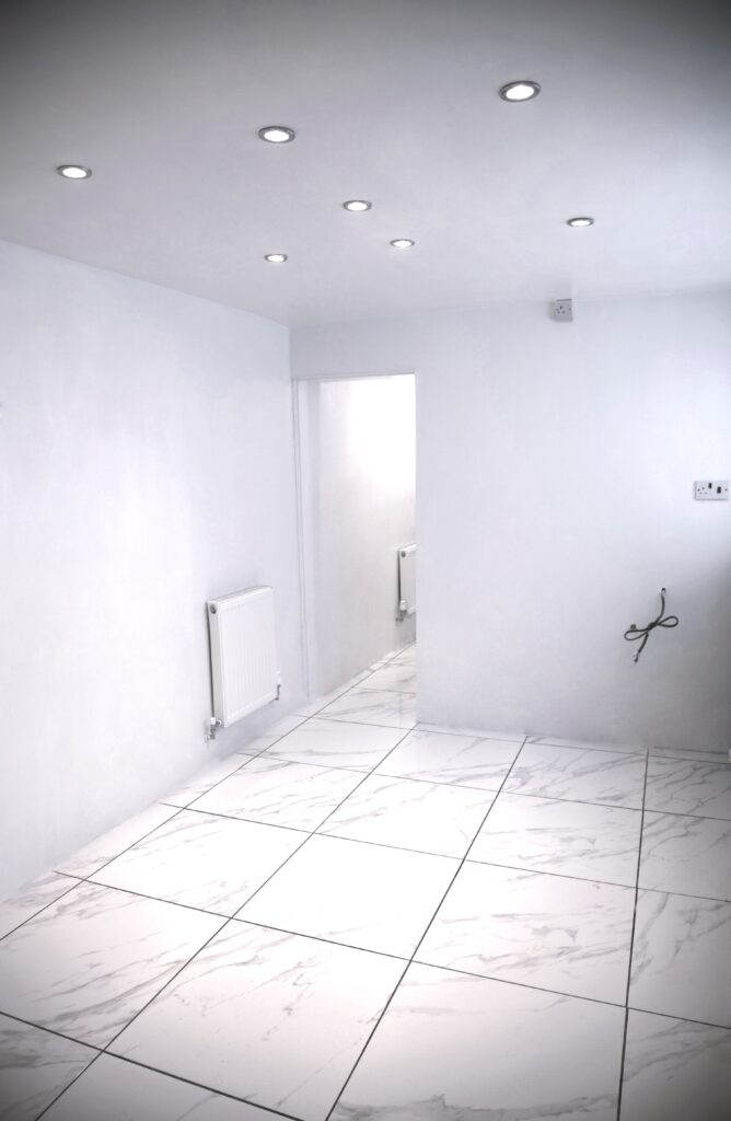 An opportunity has arisen for acquiring a freehold three-bedroom house that underwent a high-standard renovation, except for the kitchen installation, plastering of two reception rooms, and minor finishing. All the new walls, ceiling, and flooring in the kitchen are ready to fit the new kitchen. So the new buyer could put in their desired choice of kitchen.